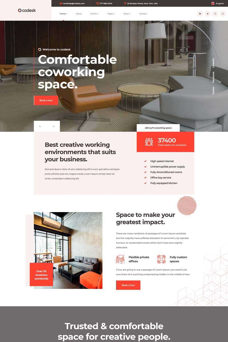 红色简单的商务楼租赁公司网站