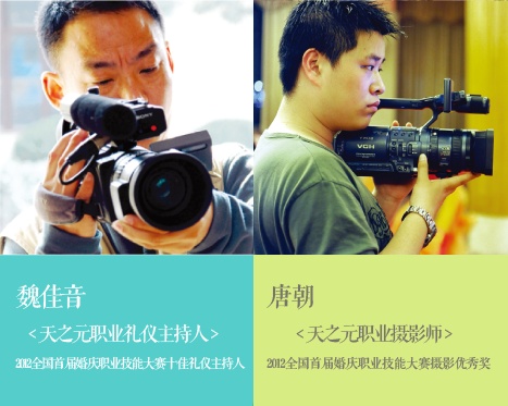 天之元—拥有国家颁发的影像专业高级职称的摄影、摄像 3人,中级职称29人,高、中级美容化妆师43人,专业主 持人9人,专职婚礼司仪47人;以及大批影视后期等工作 人员。